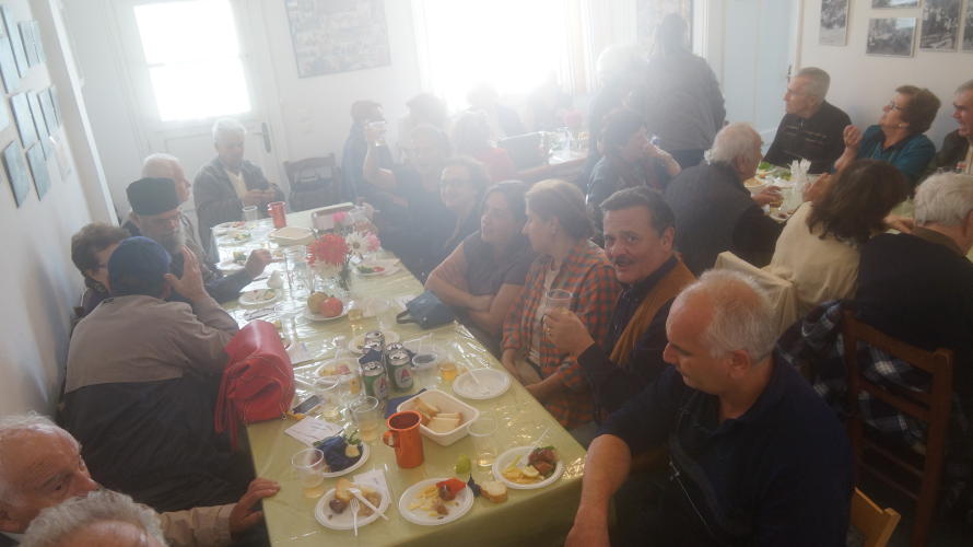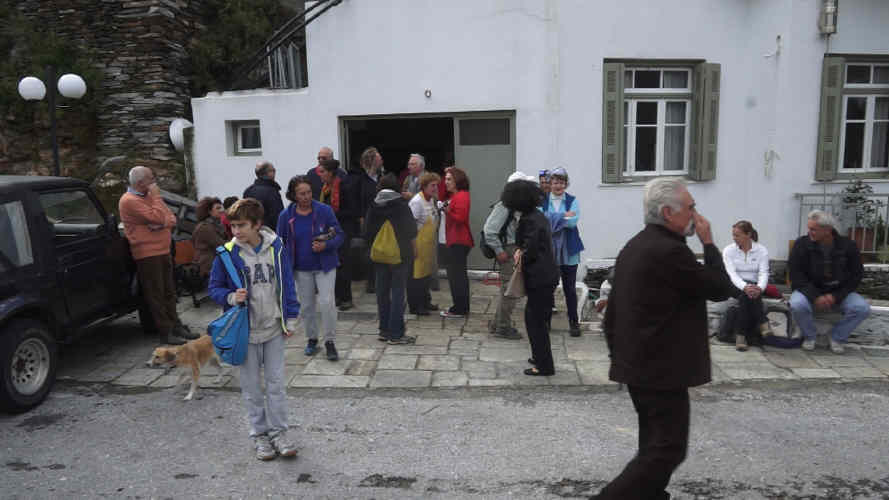 τη Κυριακή και η βροχή σταμάτησε και κόσμος ήρθε και κρύο πήρε για να πήξει και η γλύνα στα μπυθιασμένα και στη κλήρωση το τενεκάκι με τα λουκάνικα μας έπεσε και η ζηλαδιά από το σύλλογο κουτί μας ήρθε.