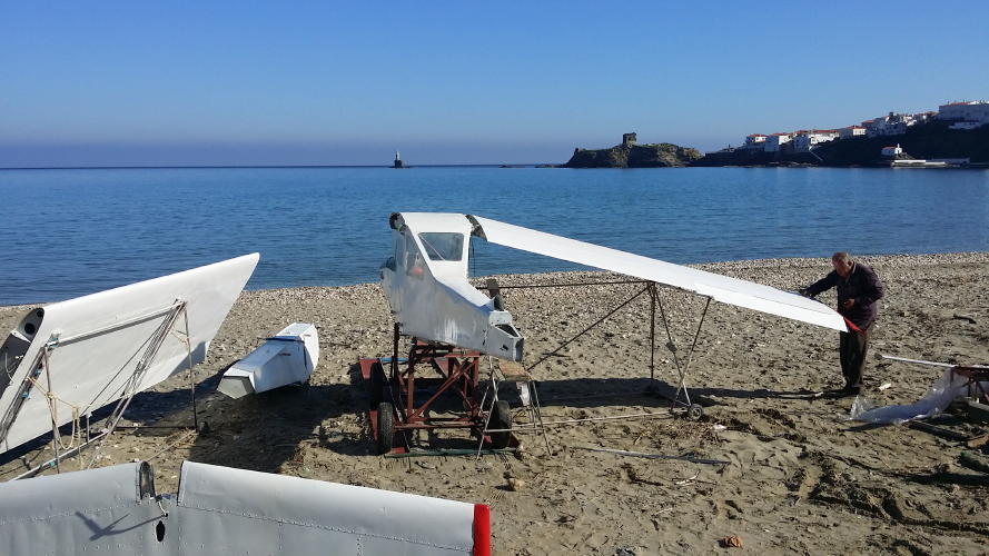 Μετά από πολλές βελτιώσεις, ελέγχους, δοκιμές και 20, τώρα, χρόνια δουλειάς, ο συνταξιούχος Κώστας μετέφερε, χθες, Πέμπτη 19 Νοεμβρίου 2015, πάλι σε κομμάτια το υδροπλάνο του στην παραλία του Νιμποριού και σήμερα Παρασκευή, αφού το συναρμολογήσει, του βάλει καύσιμο και το τσουλίσει στη θάλασσα, θα προσπαθήσει και πάλι να κάνει το όνειρό του πραγματικότητα.