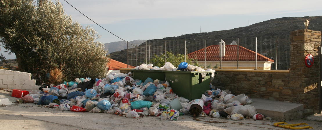 Στις γραμμές που ακολουθούν γίνεται μια προσπάθεια περιγραφής της τραγικής κατάστασης σε σχέση με τα σκουπίδια στην Άνδρο τα τελευταία δεκαπέντε χρόνια. Η κατάσταση πάσχει βαριά σε παγκόσμιο επίπεδο, ακόμη βαρύτερα στην Ελλάδα και φτάνοντας στα καθ ημάς αγγίζουμε σίγουρα τον υπερθετικό βαθμό, τόσο, ώστε πρόκληση πράγματι θα ήταν να τα κάνουμε χειρότερα. Το να βελτιωθούμε στον τομέα αυτό αποτελεί μονόδρομο, το θέμα είναι τι χαρακτηριστικά θα έχει αυτή η βελτίωση. Θα είναι επιφανειακή ή θα έχει βάθος ώστε να προκύψει μια βιώσιμη κατάσταση;
