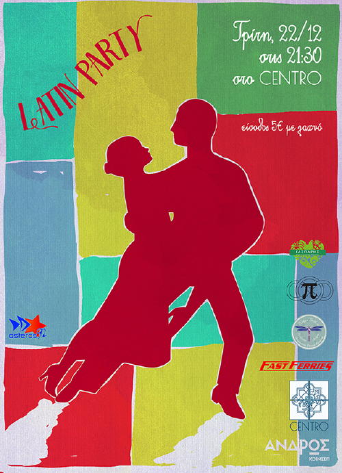 Η Κοινωνική Συνεταιριστική Επιχείρηση Άνδρου (Άνδρος Κοιν ΣΕπ), σας προσκαλεί στο Λάτιν / Ζούμπα Πάρτυ που διοργανώνει τη Τρίτη 22 Δεκεμβρίου 2015, απο τις 22:00 και μετά, στο Centro Bar, στον Όρμο Κορθίου.