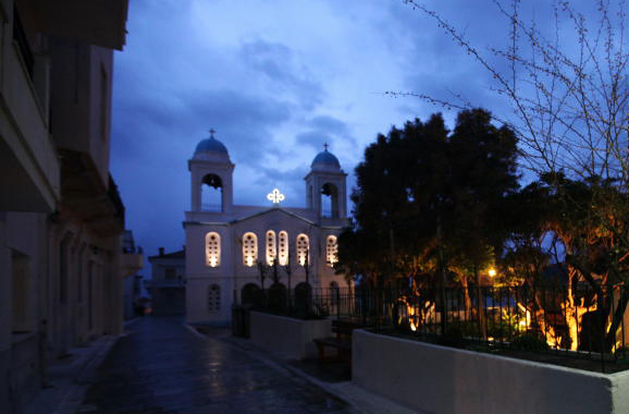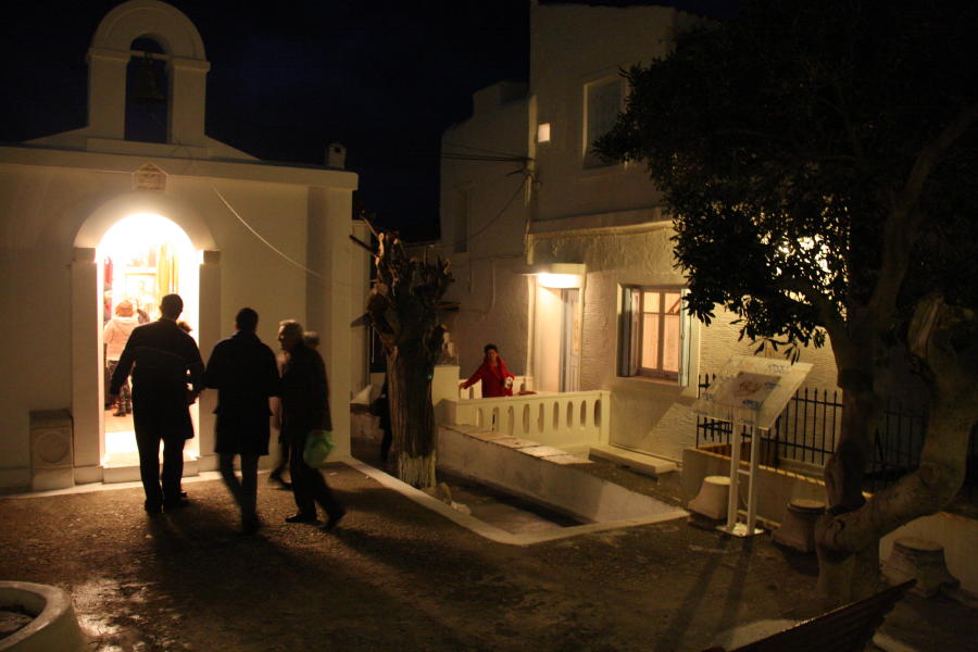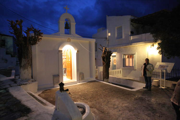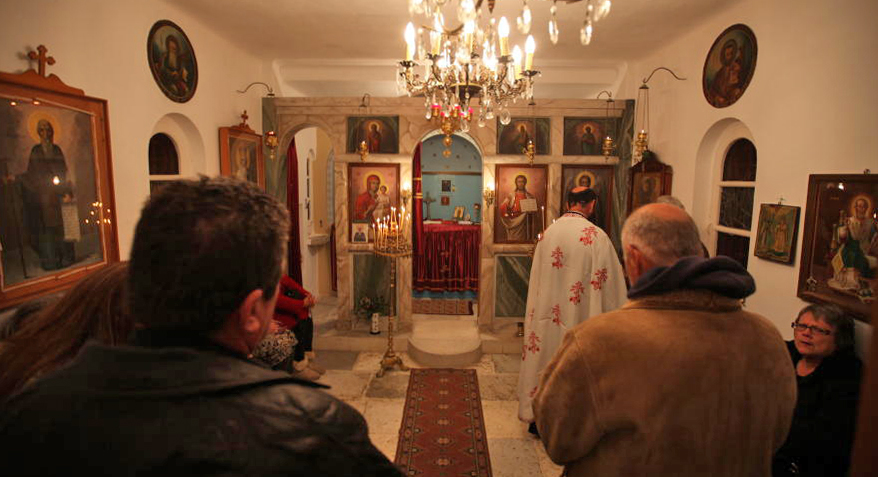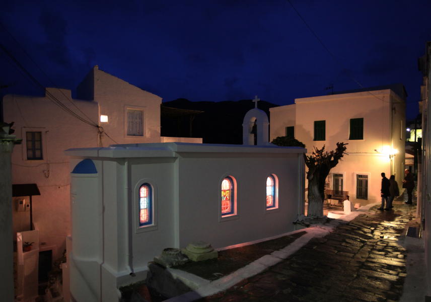 Κάτω από τον Άγιο Γιώργη, στον μοναδικό στη Χώρα Άγιο Αθανάσιο έχει αρχίσει ο εσπερινός