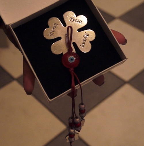 ο Παναγιώτης Μηνδρινός που περιχαρής πήρε το τετράφυλλο γούρι του