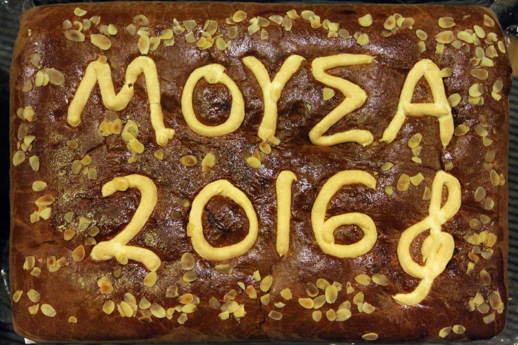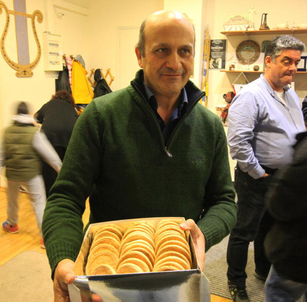 ο πρόεδρος του συλλόγου Μιχάλης Στρατής αφού είπε δυο λόγια έκοψε την πίτα του συλλόγου