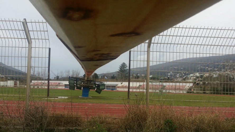 Ο πυλώνας αποτέθηκε μέσα στο Στάδιο, με προοπτική να γίνουν οι εργασίες συντήρησής του και στη συνέχεια να επανατοποθετηθεί.