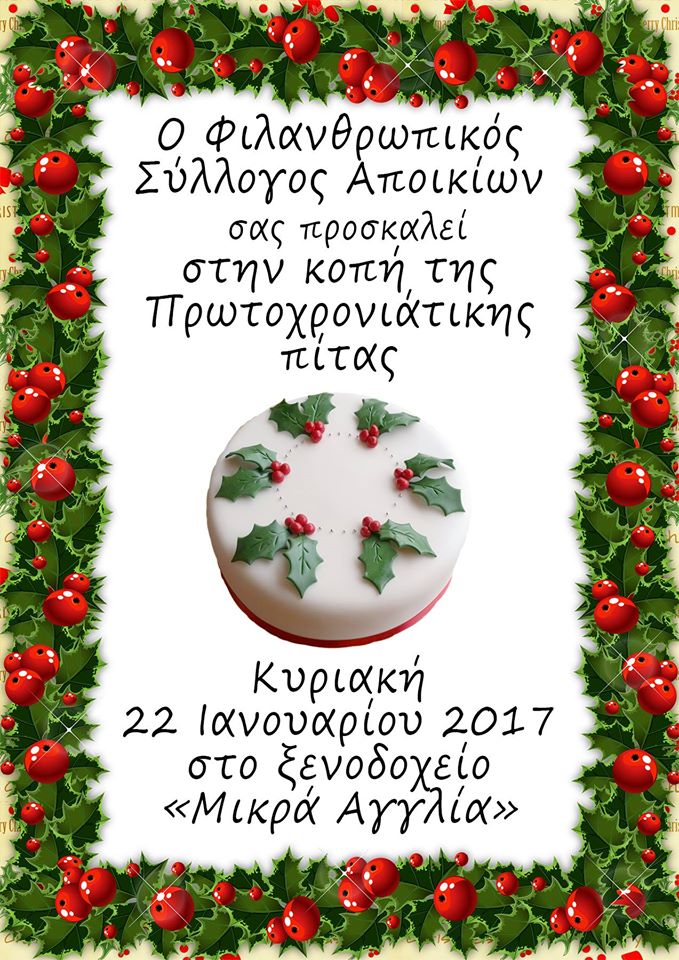 σας προσκαλεί στην κοπή της Πρωτοχρονιάτικης πίτας