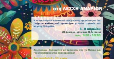 ⦁ Έναρξη εγγραφών και μαθημάτων προπαιδείας, παιδικής, νεανικής και μικτής χορωδίας την Παρασκευή, 20 Σεπτεμβρίου 2019, στην αίθουσα του Μουσικού Συλλόγου Χώρας Άνδρου. Ώρες : 17.30-18.30 ΠΡΟΠΑΙΔΕΙΑ (Ηλικίες : 3-6, Περιλαμβάνει : τραγούδι, μουσικοκινητική αγωγή, ρυθμικές ασκήσεις), 18.30-19.30 ΠΑΙΔΙΚΗ (Ηλικίες 7-12), 19.30-20.30 ΝΕΑΝΙΚΗ και 20.30-22.00 ΜΙΚΤΗ ΧΟΡΩΔΙΑ.