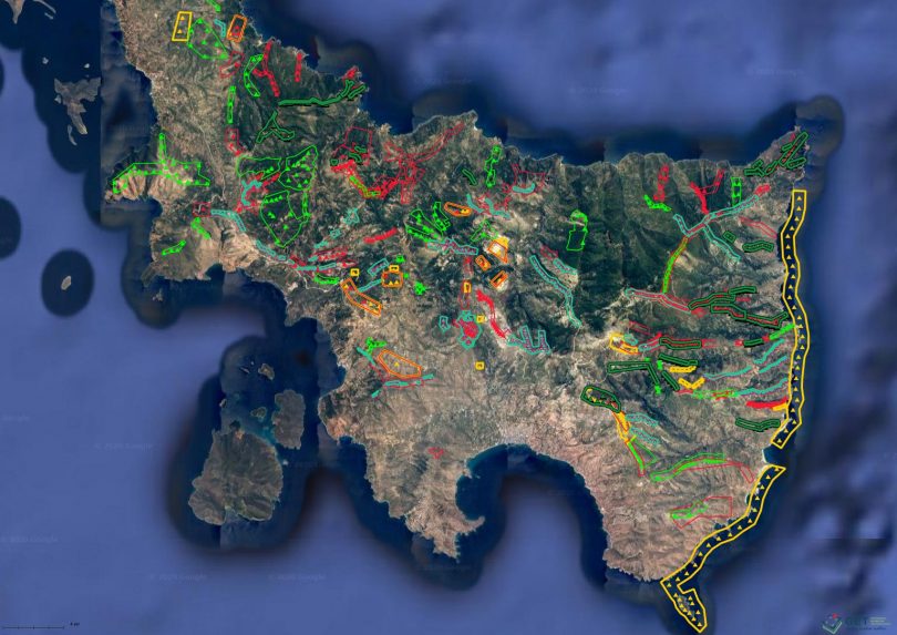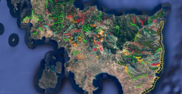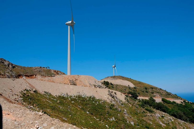 Οι φωτογραφίες της αποτυπώνουν ότι έχει γίνει τα τελευταία χρόνια στη περιοχή, ανεμογεννήτριες παντού, από τους πρόποδες της Όχης μέχρι τις κορφές της, τεράστιοι δρόμοι παντού. Το τοπίο θυσιάστηκε στην παραγωγή “πράσινης” ενέργειας… Όποια ράχη είναι ακόμα ελεύθερη απειλείται άμεσα από άλλες ανεμογεννήτριες, 400 ακόμα περιμένουν τις άδειες τους στην νότια Εύβοια.