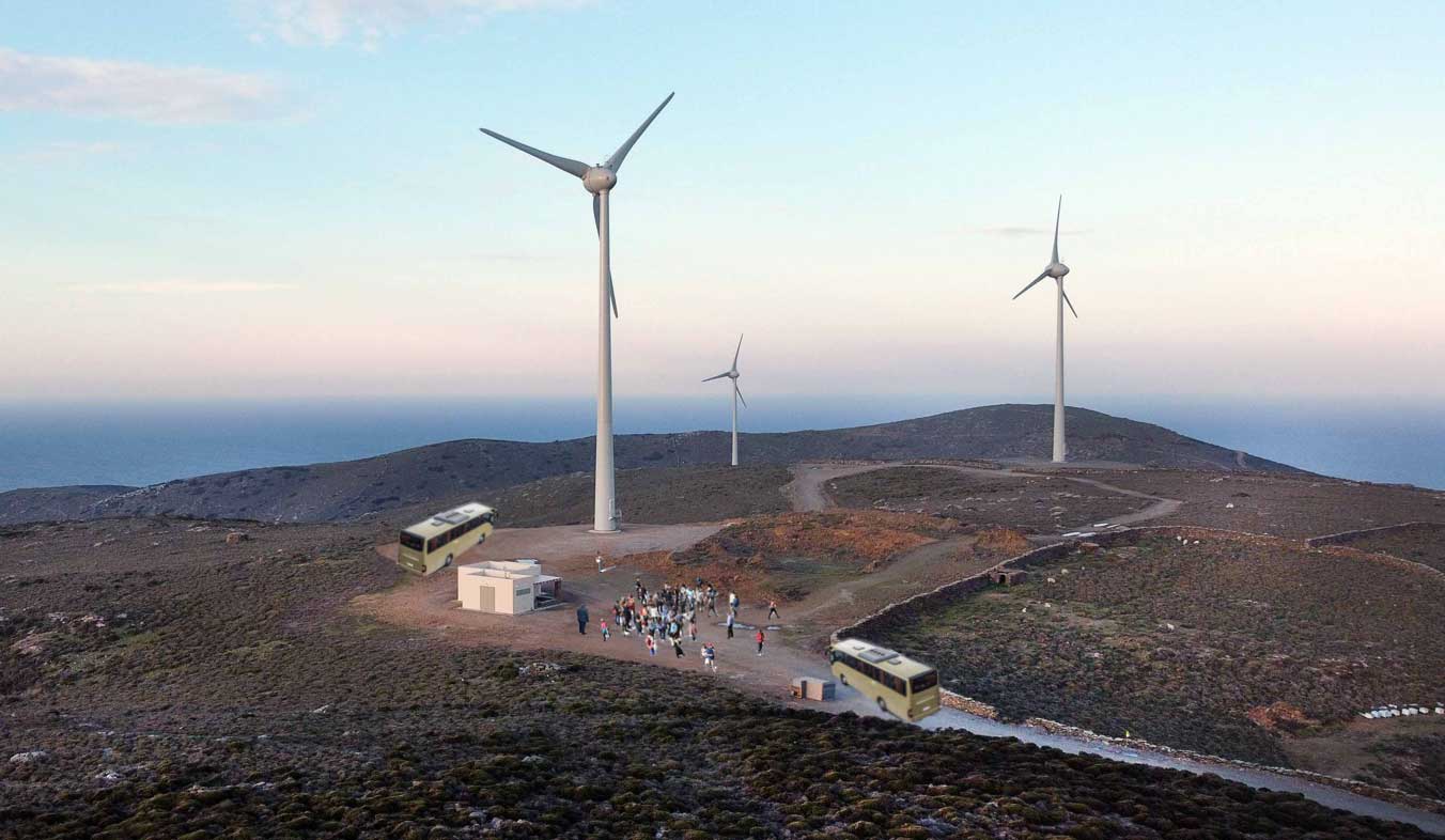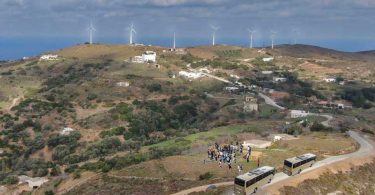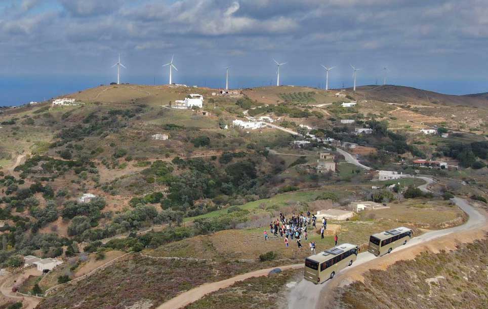 Γραμμή τα πούλμαν από το λιμάνι τράβηξαν βόρεια και 12 η ώρα οι κινέζοι έβγαζαν σέλφι μπροστά στο παλιό αιολικό πάρκο στο Καλιβάρι και λίγο πιο μετά στο ολοκαίνουριο στο Μαράθι, είδαν και τα νέα ανεμόμετρα στους ιστούς πάνω και ρωτούσαν πότε θα μπουν οι νέες ανεμογεννήτριες για να ξανάρθουν να τις καμαρώσουν.