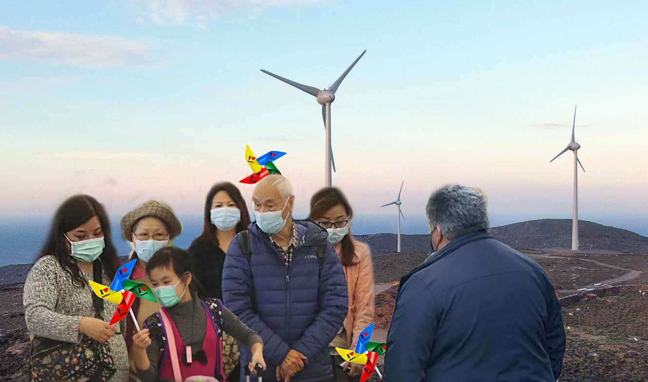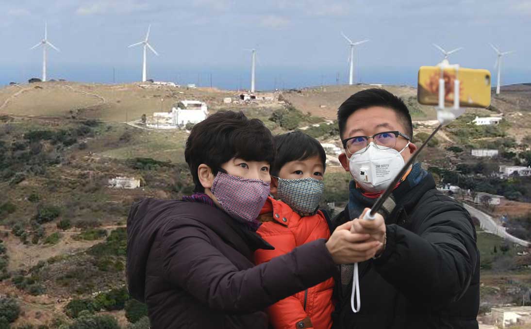 Πρέπει τα ουράνια να ήταν ανοικτά και εισακούστηκε εκεί ψηλά ο επενδυτής των αιολικών που ήρθε στο Γαύριο πέρσι και είπε ότι τα αιολικά πάρκα στη Βόρεια Άνδρο θα είναι πόλος έλξης τουριστών. Και να που χθες έφτασαν με το πρωινό πλοίο δύο πούλμαν γεμάτα με κινέζους τουρίστες που λίγο πριν έρθουν εδώ, διάβασαν στον Guardian ότι η Άνδρος είναι cοvid free νησί και μετά είδαν στο μεγάλο κινέζικο κανάλι CCTV- NEWS τον Δήμαρχο Άνδρου όχι μόνο να επιβεβαιώνει το αγγλικό δημοσίευμα αλλά και να διαφημίζει τις ανεμογεννήτριες στο Καλιβάρι και στο Μαράθι ως μοναδικής ομορφιάς και προόδου τουριστικό αξιοθέατο και αποφάσισαν να κάνουν αυτό το ταξίδι. Μαζεύτηκαν λοιπόν, έφτιαξαν βίζες και τα σχετικά με τον κορονοϊό έγγραφα και να τους τα άγρια χαράματα να μπαίνουν στο πλοίο πριν πιάσουν βάρδια οι λιμενικοί και να έρχονται στην Άνδρο.
