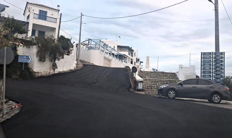 Απομένουν λίγα μέτρα προς τη στροφή «Παπαδάκη», όπου θα προηγηθεί φρεζάρισμα της παλιάς ασφάλτου, καθώς και το τμήμα από το γεφύρι μέχρι την είσοδο του λιμανιού, το οποίο θα πλακοστρωθεί.