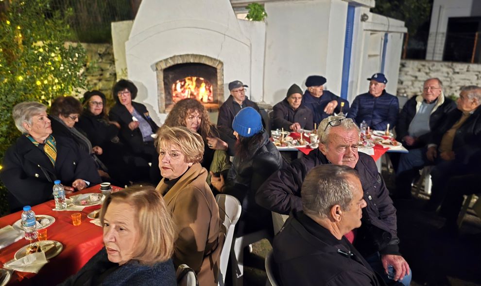 Τρεις οι Άγιοι Βασίληδες με τη μαμά τους. Πολλά και τα τραταμέντα: ζεστά κρασιά, μεζέδες, κουραμπιέδες και φοινίκια σπιτικά, σούπες ζεστές, πίτσες προσφορά του Αζάπη, λουκουμάδες… ούτε ένας δεν έμεινε.
