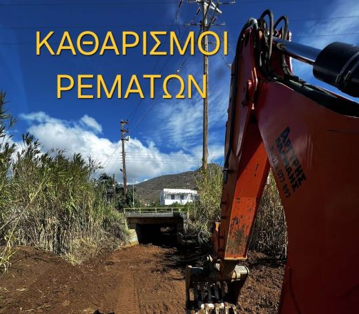 Καθαρισμός Ρεμάτων και Απομάκρυνση Υλικών με την εργολαβία Αντιπλημμυρικής Προστασίας Άνδρου και με την παροχή υπηρεσίας “Καθαρισμός Ρεμάτων ν. Άνδρου, Τήνου, Πάρου, Μυκόνου, Αμοργού, Σίφνου και Σέριφου” : Διενεργούνται εκτεταμένοι καθαρισμοί σε κρίσιμα ρέματα, καθώς και απομάκρυνση ξερών χόρτων και φερτών υλικών. Αυτή η προληπτική δράση είναι ζωτικής σημασίας για την αντιπλημμυρική προστασία του νησιού. Οι καθαρισμοί έχουν ξεκινήσει από το 2024 και συνεχίζονται σε όλο το νησί.
