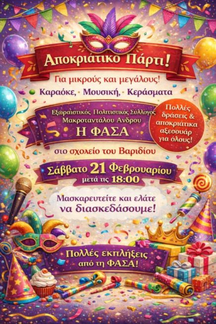 Η Άνδρος φορά τα γιορτινά της και μετατρέπεται για ακόμη μία φορά σε έναν τόπο γεμάτο φως, μουσική, χαμόγελα και ανθρώπινη ζεστασιά. Από τη Χώρα μέχρι το Βαρίδι, όπου θα στηθεί και γαϊτανάκι, από τον Όρμο Κορθίου μέχρι την Κατάκοιλο, με τη Μεσσαριά να ανοίγει απόψε τον χορό, η Αποκριά γίνεται μια μεγάλη αγκαλιά που χωρά κατοίκους, επισκέπτες και Ανδριώτες της διασποράς. Είναι η εποχή που το νησί θυμάται τον εαυτό του μέσα από τη χαρά, την παράδοση και τη συλλογική δημιουργία.