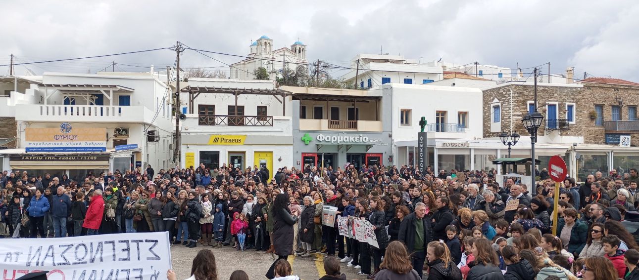 Από τη σημερινή, Σάββατο 28 Φεβρουαρίου 2026, συγκινητική πολύ μεγάλη- άνω των 600 ατόμων -και πρωτοφανή για τα δεδομένα της Άνδρου , ακομμάτιστη και μη παραταξιακή , συγκέντρωση για τα Τέμπη στο λιμάνι του Γαυρίου. (Γιάννης Ξανθός)