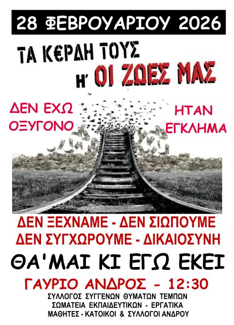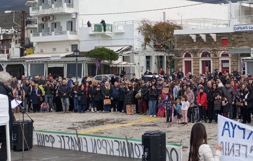 Από τη σημερινή, Σάββατο 28 Φεβρουαρίου 2026, συγκινητική πολύ μεγάλη- άνω των 600 ατόμων -και πρωτοφανή για τα δεδομένα της Άνδρου , ακομμάτιστη και μη παραταξιακή , συγκέντρωση για τα Τέμπη στο λιμάνι του Γαυρίου. (Γιάννης Ξανθός)