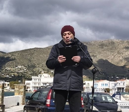 Ο πάτερ Μιχάλης κλείνοντας την εκδήλωση καταγγέλλοντας τις εγκληματικές ενέργειες που έγιναν, εκφώνησε τις 57 αδικοχαμένες ψυχές με τους κατοίκους να φωνάζουν για τον/την καθένα παρών/ παρούσα.